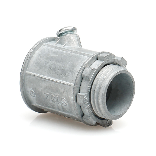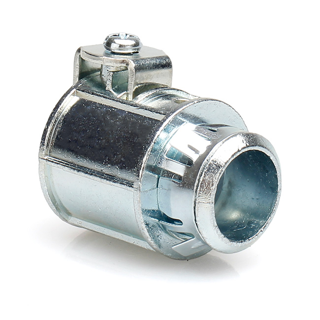 Bx-Flex Conduit Fittings, Set Screw Type, S11/S12/S13/S14/S18/S24 series are certified by UL laboratory according to UL514B. The metal fittings are applied on the relay or end point of wiring system to connect metal conduits, junction box or enclosure for wiring extension and protection. The fitting body is made of zinc alloy with RoHS compliance. The fitting is pushed to fix/fixed to the knockouts of junction box or tapped entries by locknut with external NPS thread system and connected with metal flexible conduit by a set screw and a clip. This series of fitting is proposed to fit with metal flexible conduit series PRWG and PRWA.