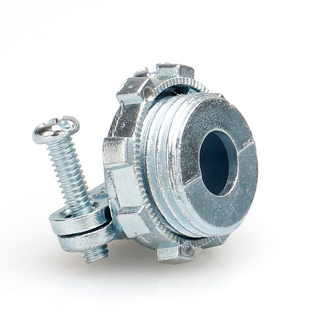 S19 series, Snap-in type, is certified by UL laboratory according to UL514B standard. The fitting is pushed to fix to the knockouts of junction box and connected with metal flexible conduit by tightening the plate with two screws.